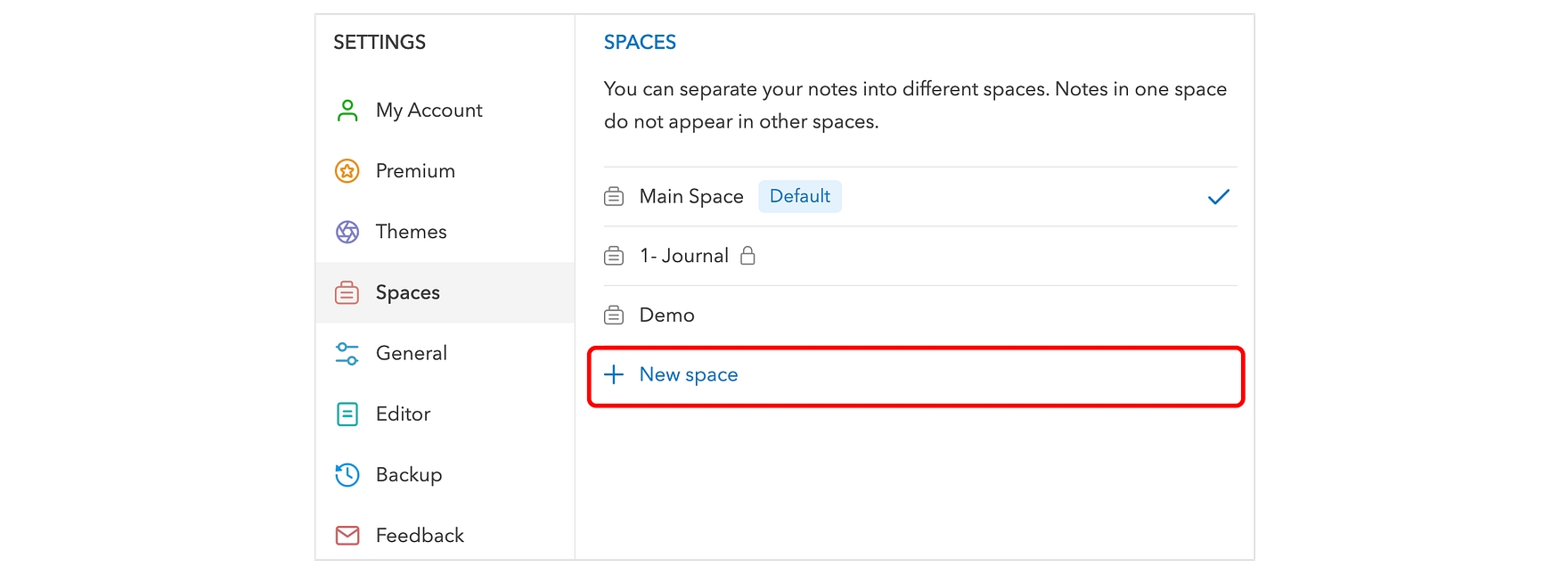 By default, all your existing notes, notebooks… belong a default space called General . You can edit the name of this default space but cannot delete it.