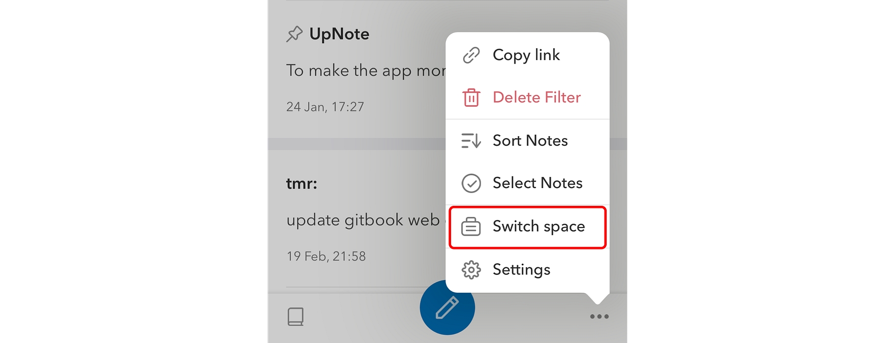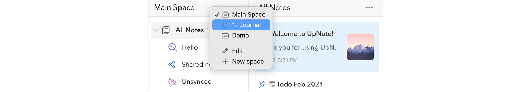 If you have multiple spaces, you can switch between them by tapping/clicking on the space name at the top row of your sidebar and selecting the desired space.