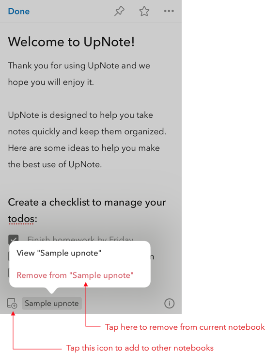 ノートブックに追加を選択します。これでノートを別のノートブックに整理できます。