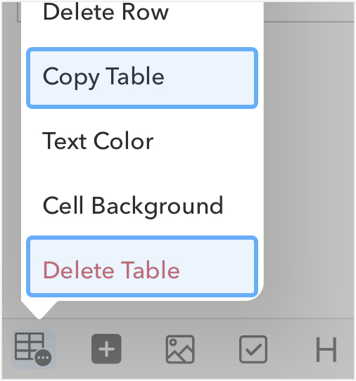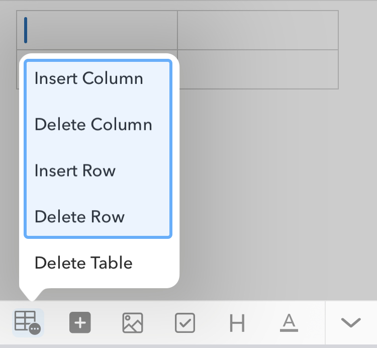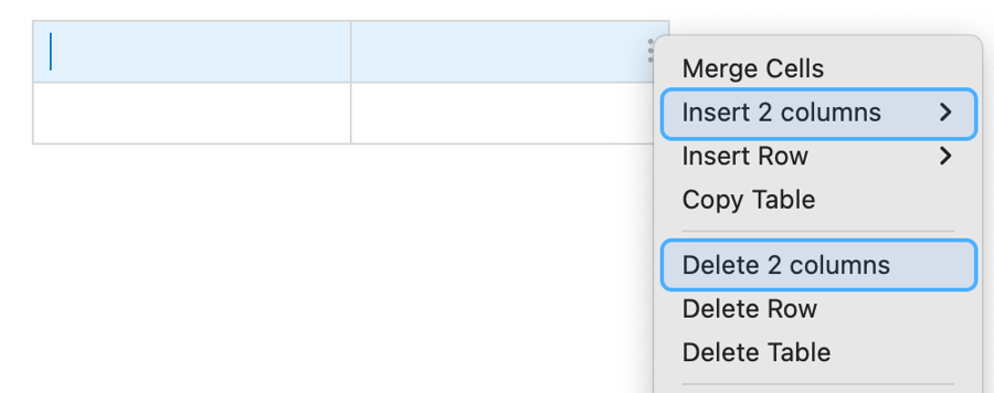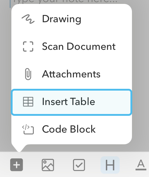 button in the formatting bar at the bottom of the note editor and select Insert Table, or use the shortcutCmd/Ctrl+T