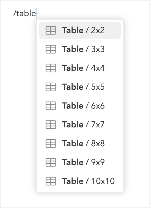 You can also use the slash menu to quickly insert the table in your note: